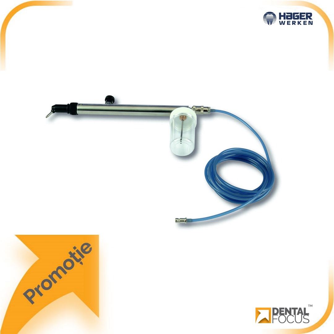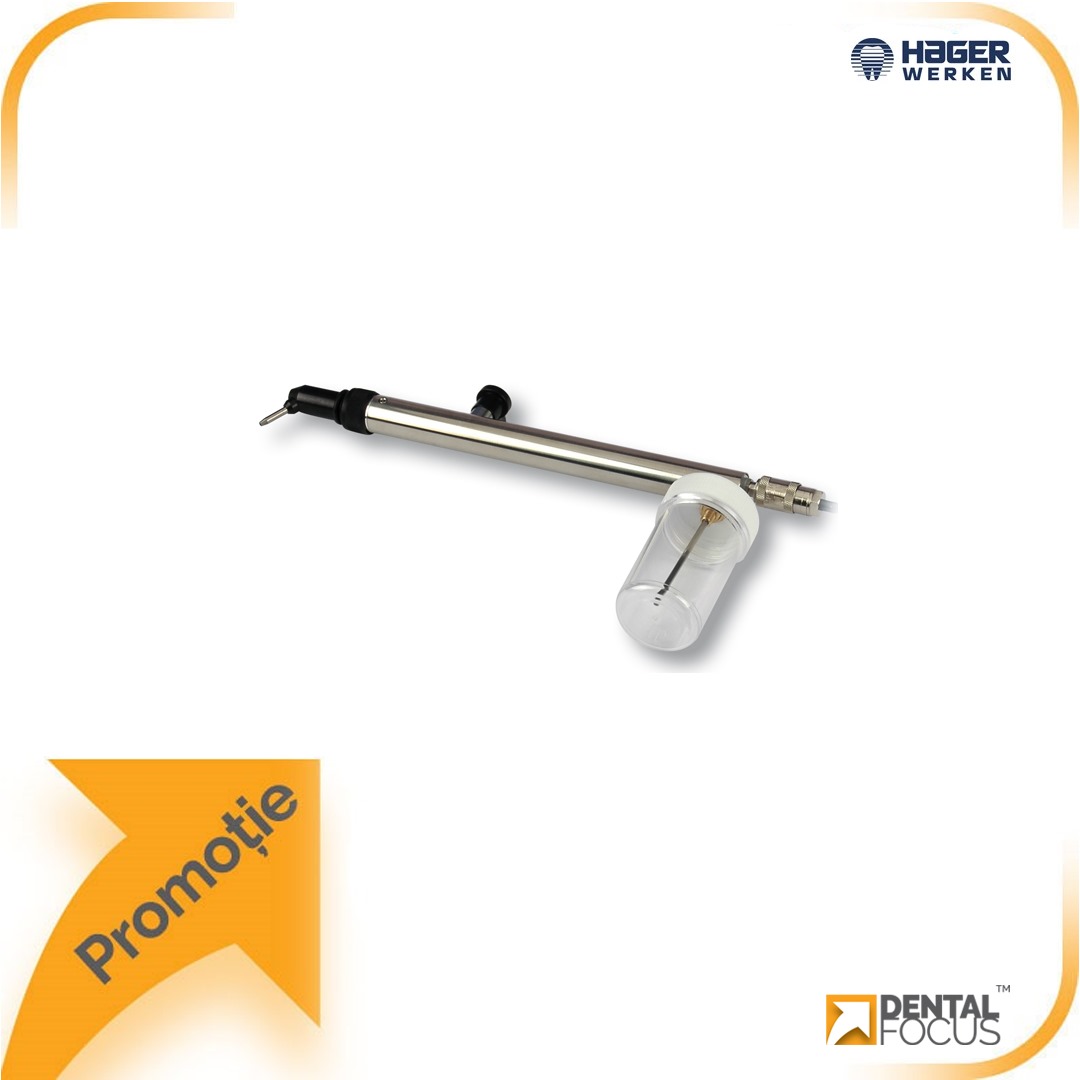 Mini-sablator complet cu adaptor specific pentru turbine KAVO, BIEN AIR, W&H, SIRONA, NSK sau pentru laborator (de precizat tipul la momentul comenzii). Sablatorul creste semnificativ adeziunea si se foloseste pentru pregatirea suprafetelor de colare a coroanelor, puntilor si bracketurilor. Reprezinta un ajutor ideal in tehnicile adezive.